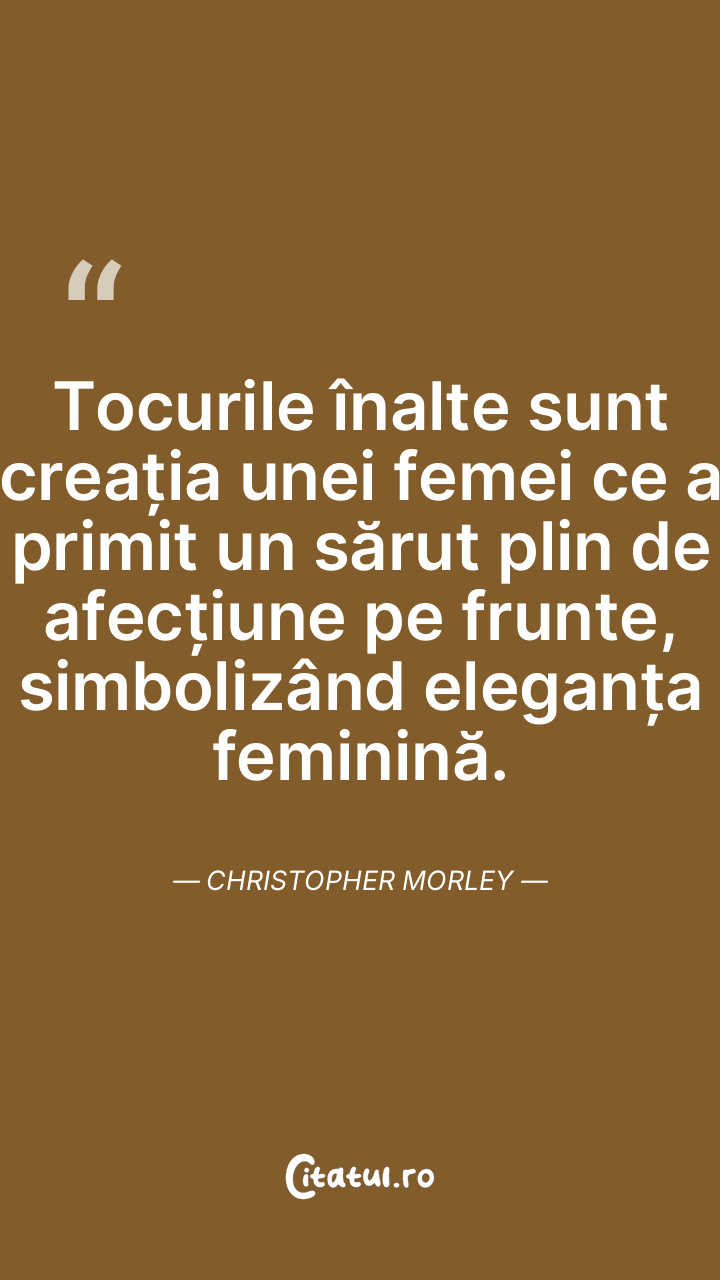 Tocurile înalte sunt creația unei femei ce a primit un sărut plin de afecțiune pe frunte, simbolizând eleganța feminină. Christopher Morley