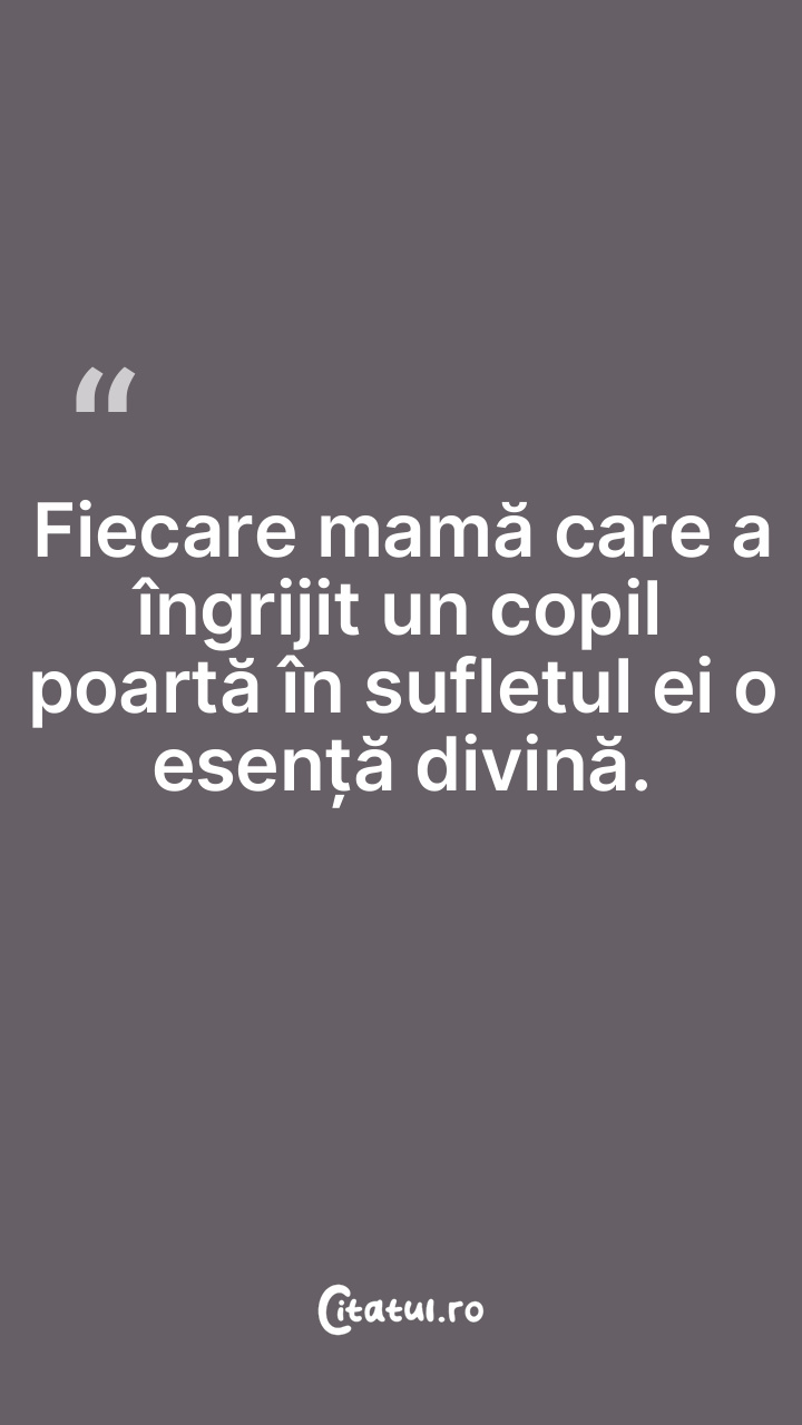 Fiecare mamă care a îngrijit un copil poartă în sufletul ei o esență divină.