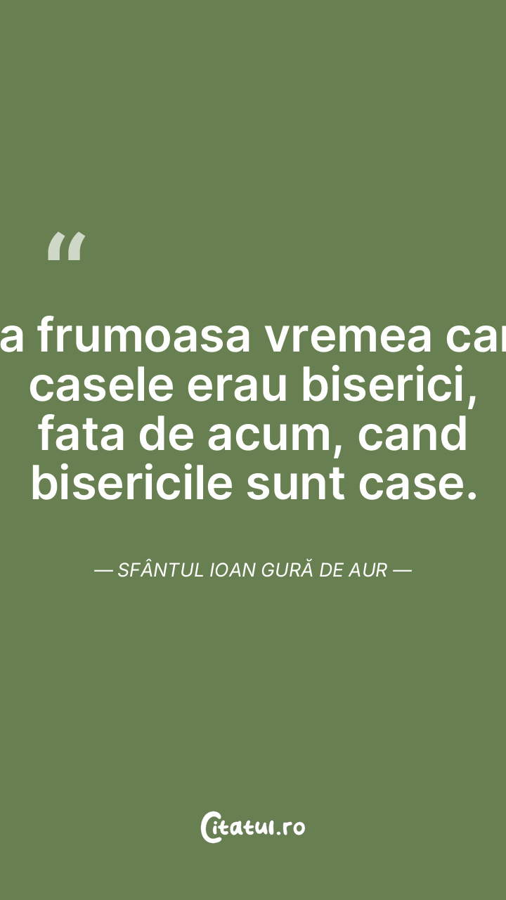 Era frumoasa vremea cand casele erau biserici, fata de acum, cand bisericile sunt case. Sfântul Ioan Gură de Aur