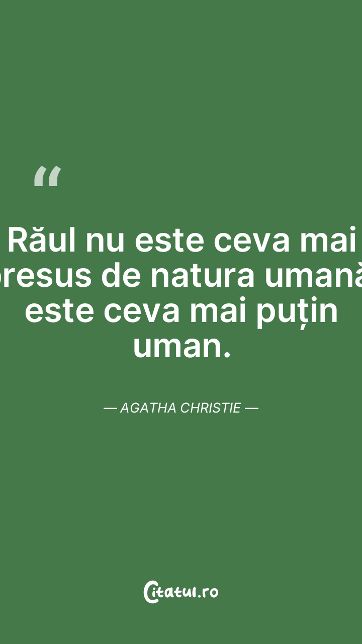 Răul nu este ceva mai presus de natura umană, este ceva mai puțin uman. Agatha Christie