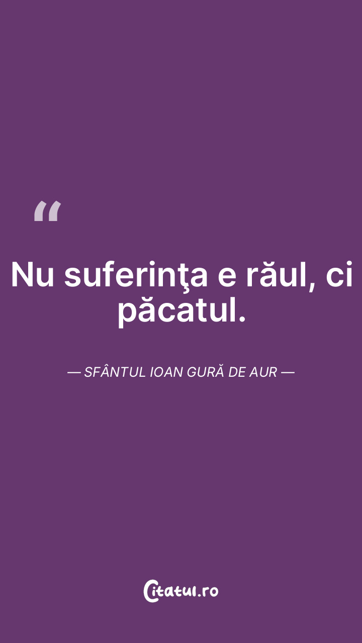 Nu suferinţa e răul, ci păcatul. Sfântul Ioan Gură...