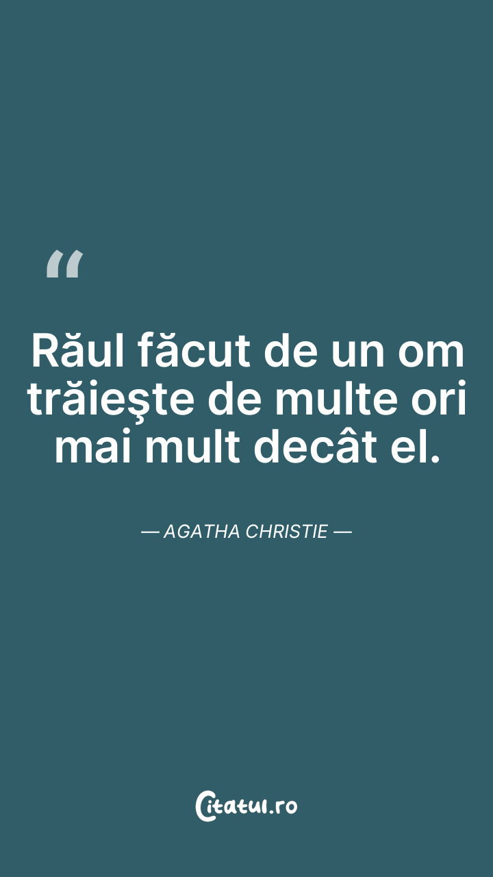Răul făcut de un om trăieşte de multe ori mai mult decât el. Agatha Christie