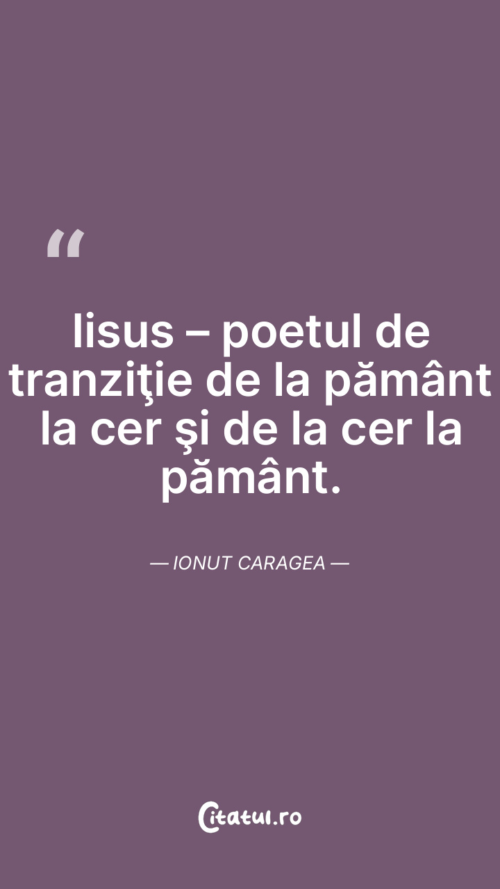 Iisus – poetul de tranziţie de la pământ la cer şi de la cer la pământ. Ionut Caragea