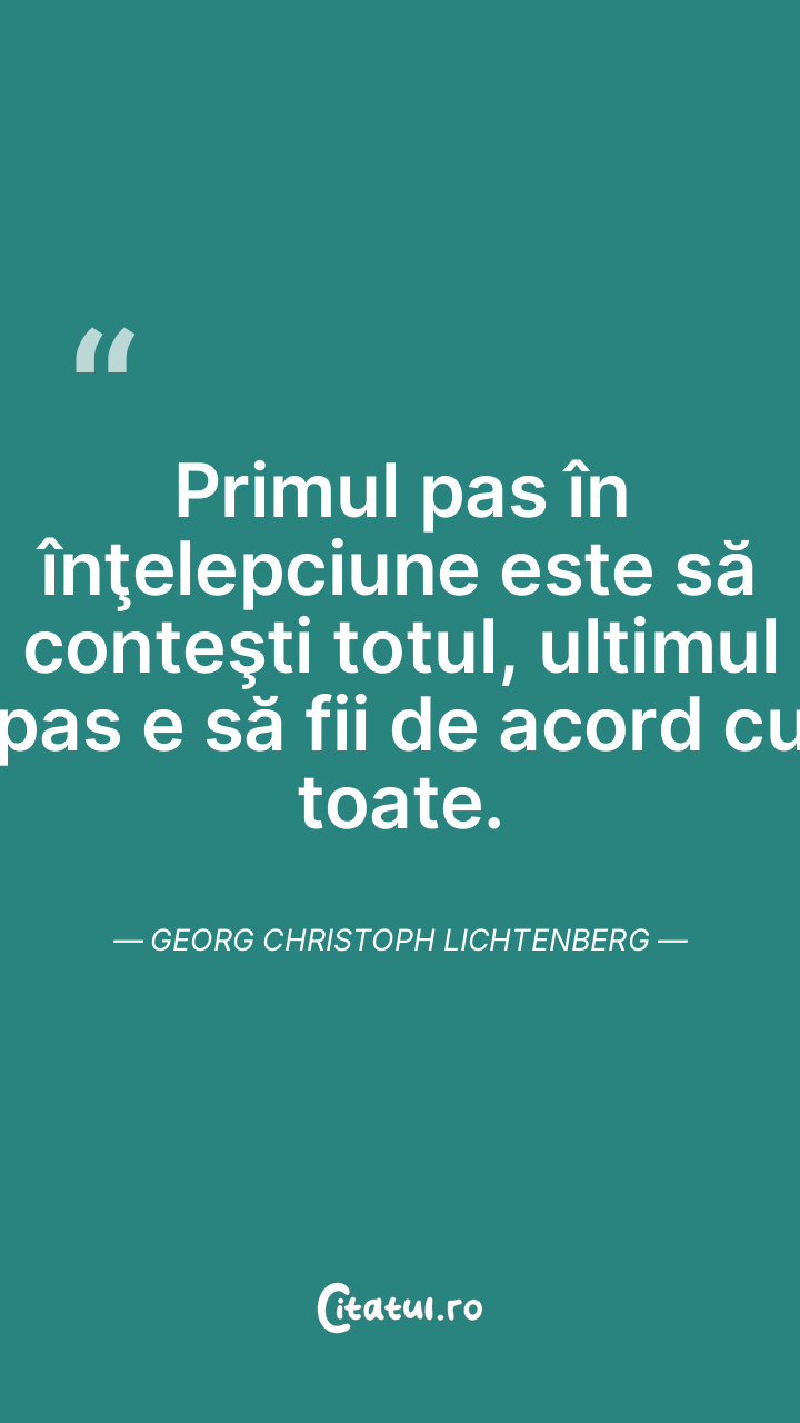 Primul pas în înţelepciune este să conteşti totul, ultimul pas e să fii de acord cu toate. Georg Christoph Lichtenberg