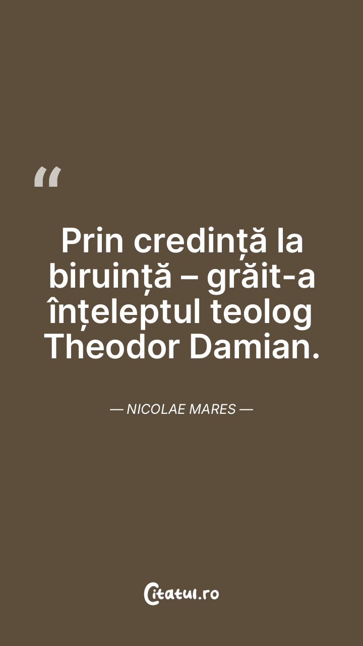 Prin credință la biruință – grăit-a înțeleptul teolog Theodor Damian. Nicolae Mares