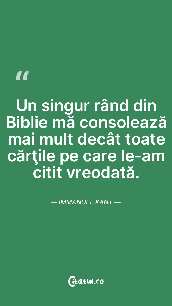 Un singur rând din Biblie mă consolează mai mult decât toate cărţile pe care le-am citit vreodată. Immanuel Kant