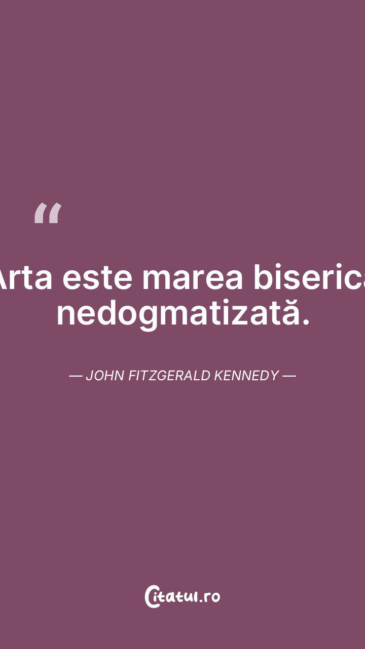 Arta este marea biserică nedogmatizată. John Fitzgerald Kennedy