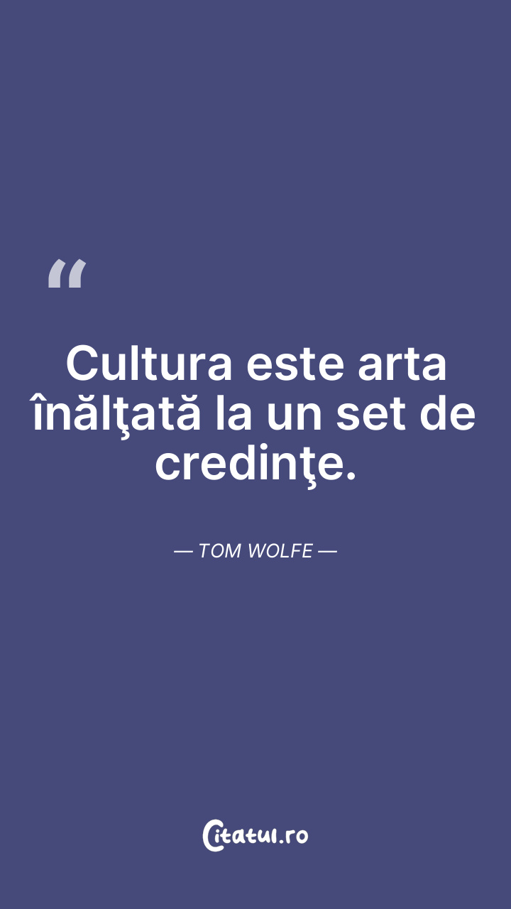 Cultura este arta înălţată la un set de credinţe. Tom Wolfe