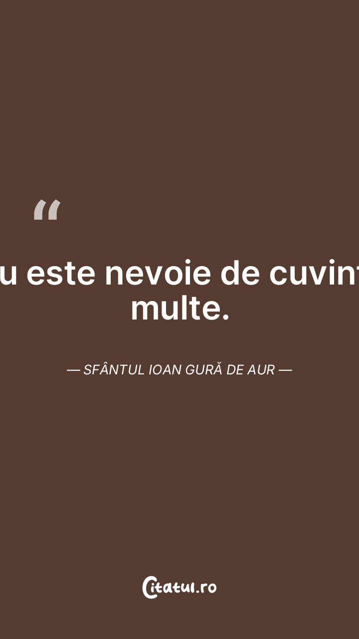 Nu este nevoie de cuvinte multe. Sfântul Ioan Gură de Aur