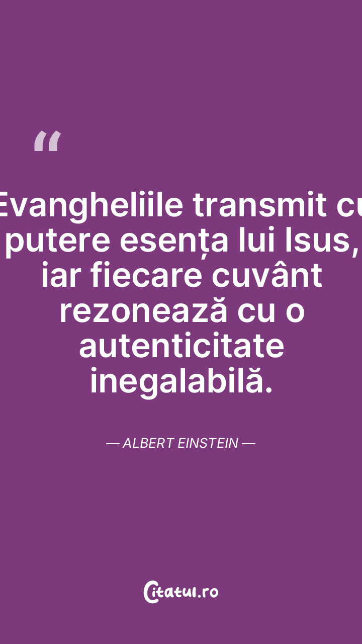 Evangheliile transmit cu putere esența lui Isus, iar fiecare cuvânt rezonează cu o autenticitate inegalabilă. Albert Einstein