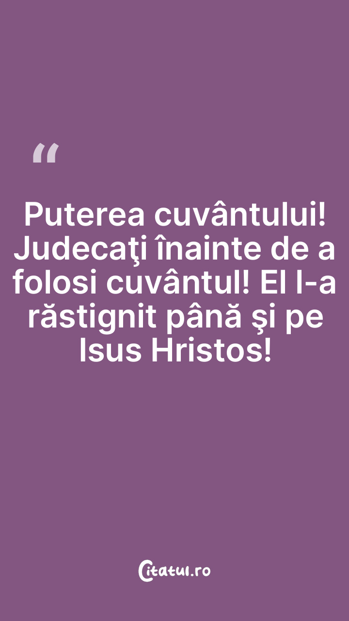 Puterea cuvântului! Judecaţi înainte de a folosi cuvântul! El l-a răstignit până şi pe Isus Hristos!