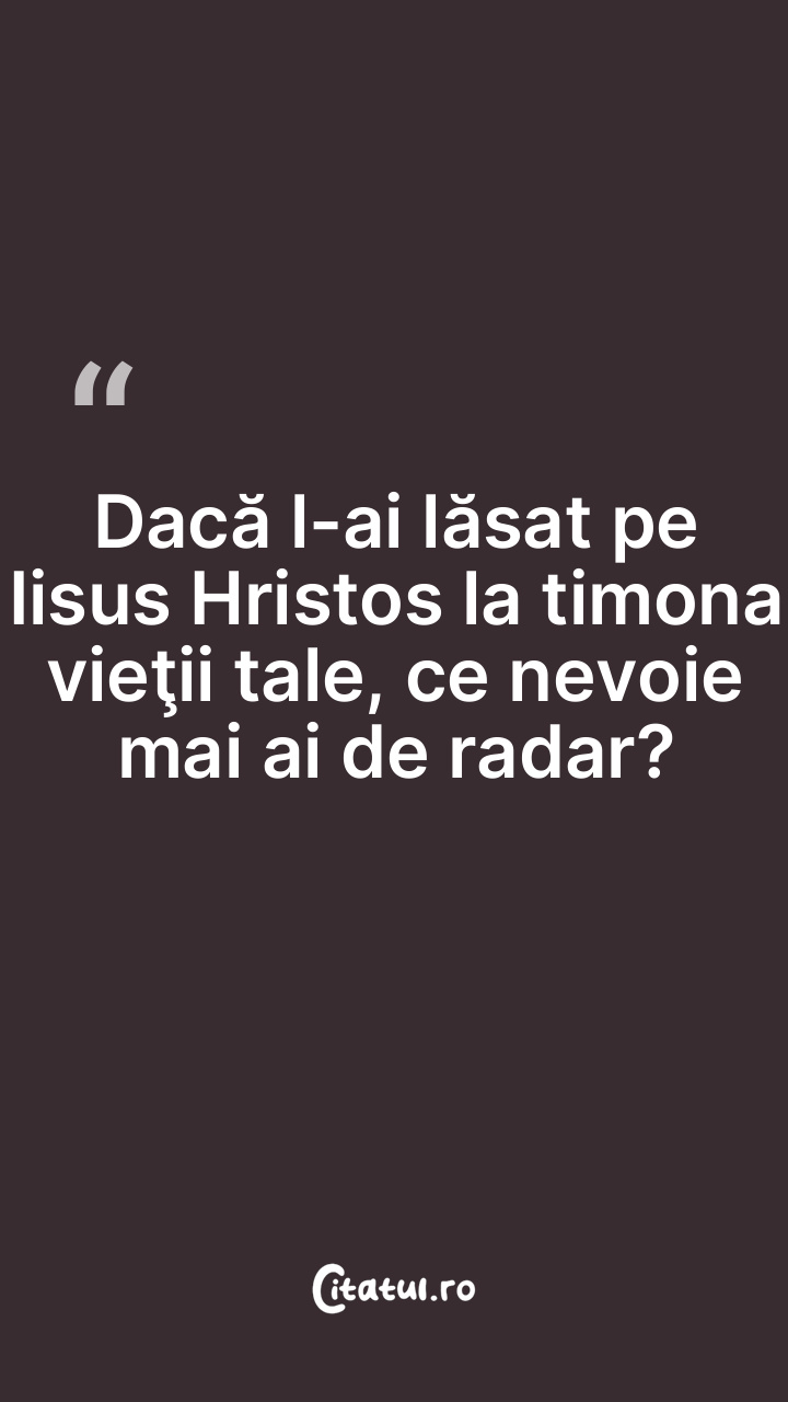 Dacă l-ai lăsat pe Iisus Hristos la timona vieţii tale, ce nevoie mai ai de radar?