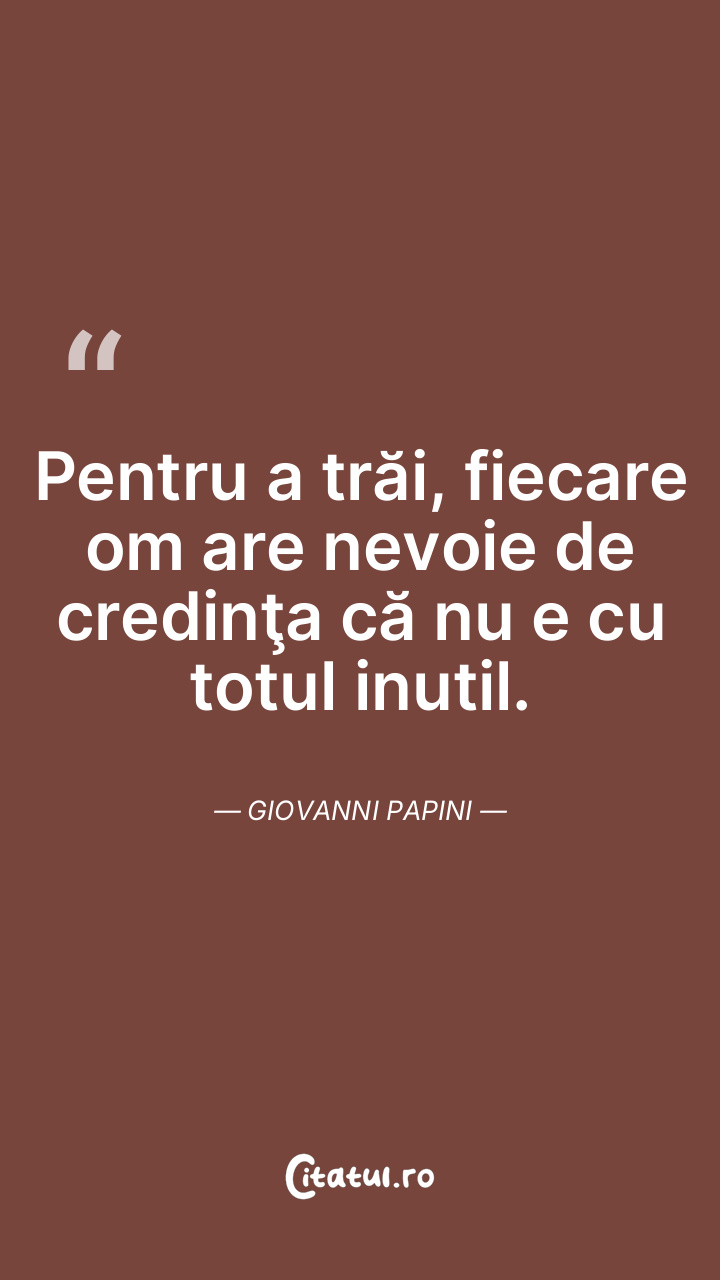 Pentru a trăi, fiecare om are nevoie de credinţa că nu e cu totul inutil. Giovanni Papini