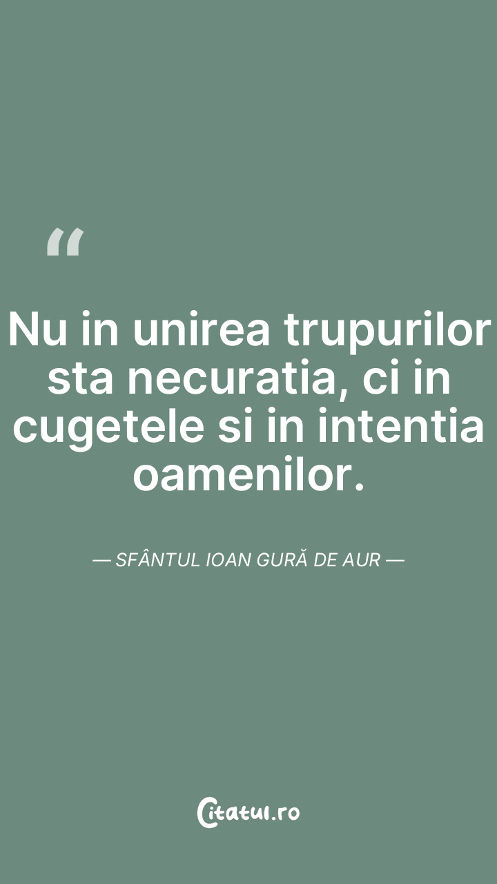 Nu in unirea trupurilor sta necuratia, ci in cugetele si in intentia oamenilor. Sfântul Ioan Gură de Aur