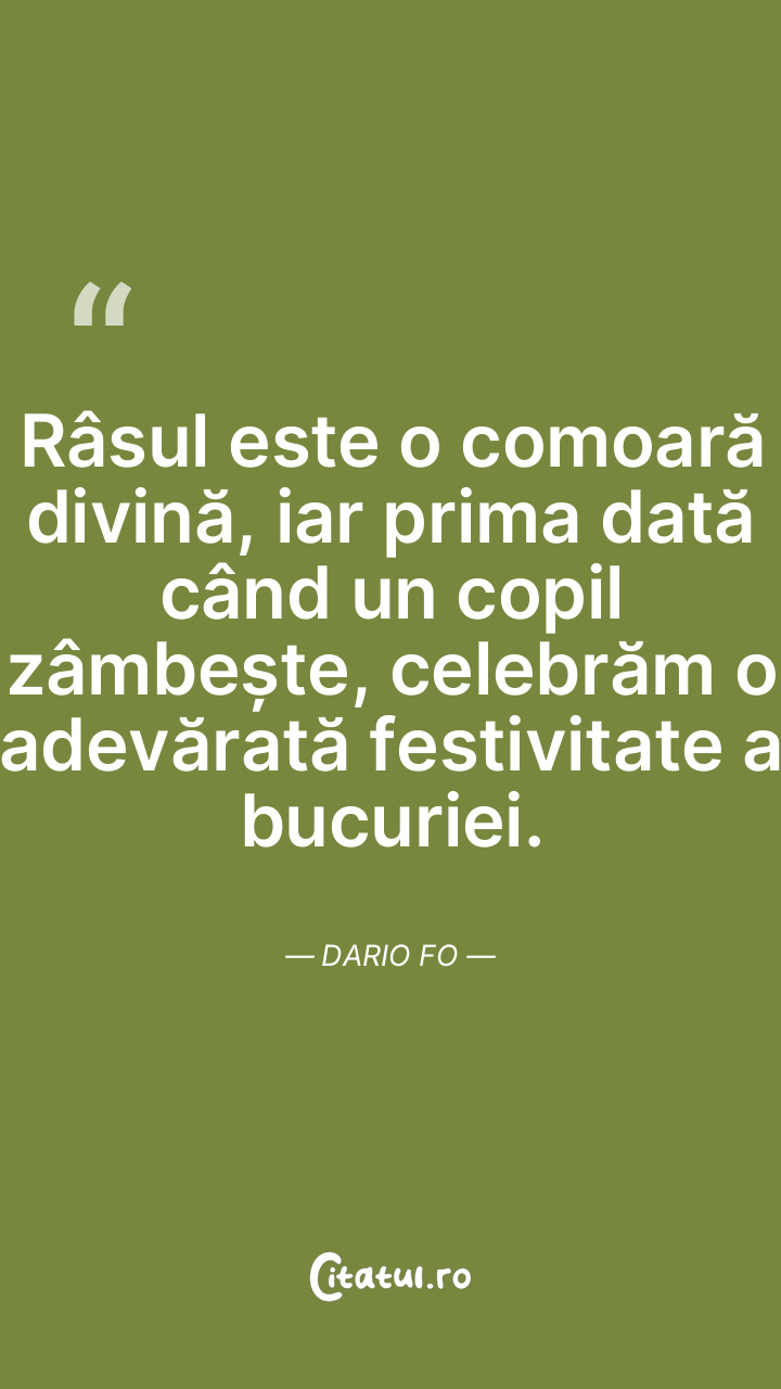 Râsul este o comoară divină, iar prima dată când un copil zâmbește, celebrăm o adevărată festivitate a bucuriei. Dario Fo