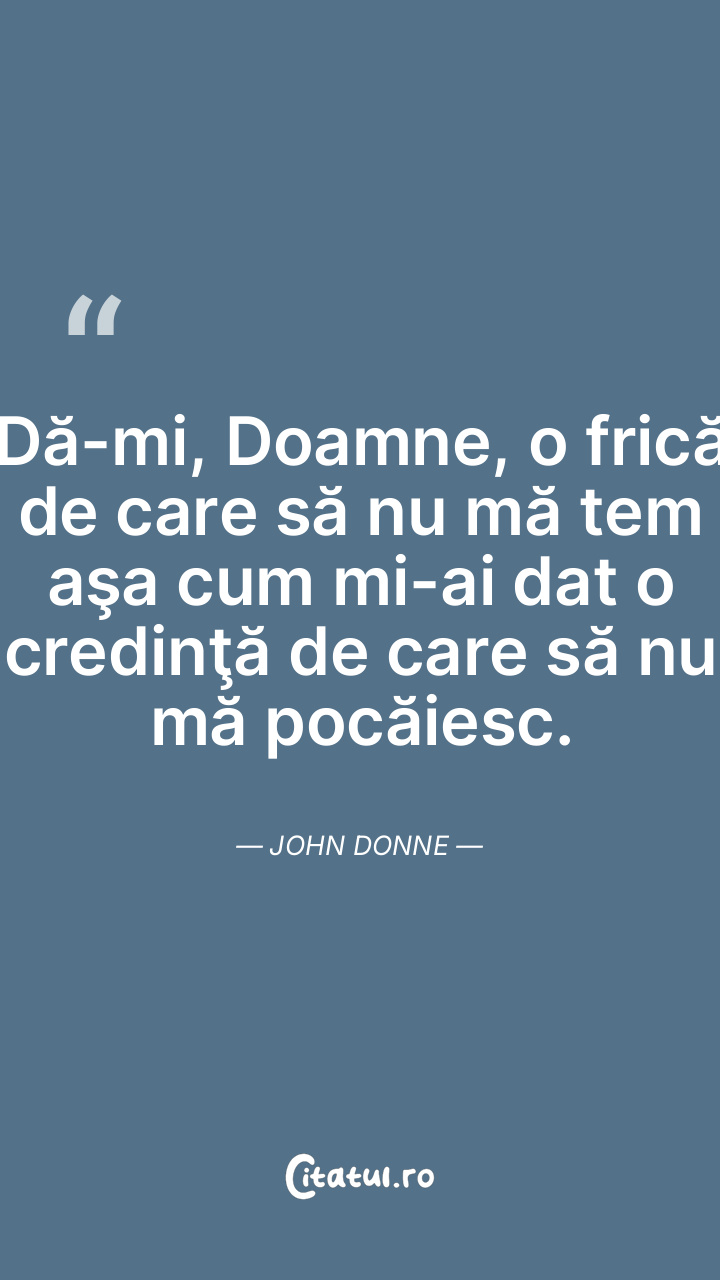 Dă-mi, Doamne, o frică de care să nu mă tem aşa cum mi-ai dat o credinţă de care să nu mă pocăiesc. John Donne