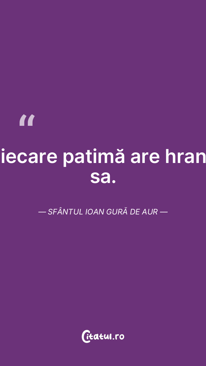 Fiecare patimă are hrana sa. Sfântul Ioan Gură de ...