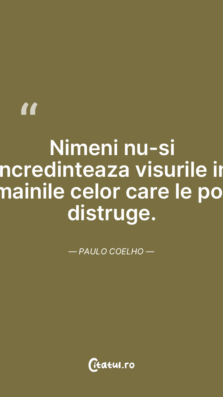 Nimeni nu-si incredinteaza visurile in mainile celor care le pot distruge. Paulo Coelho