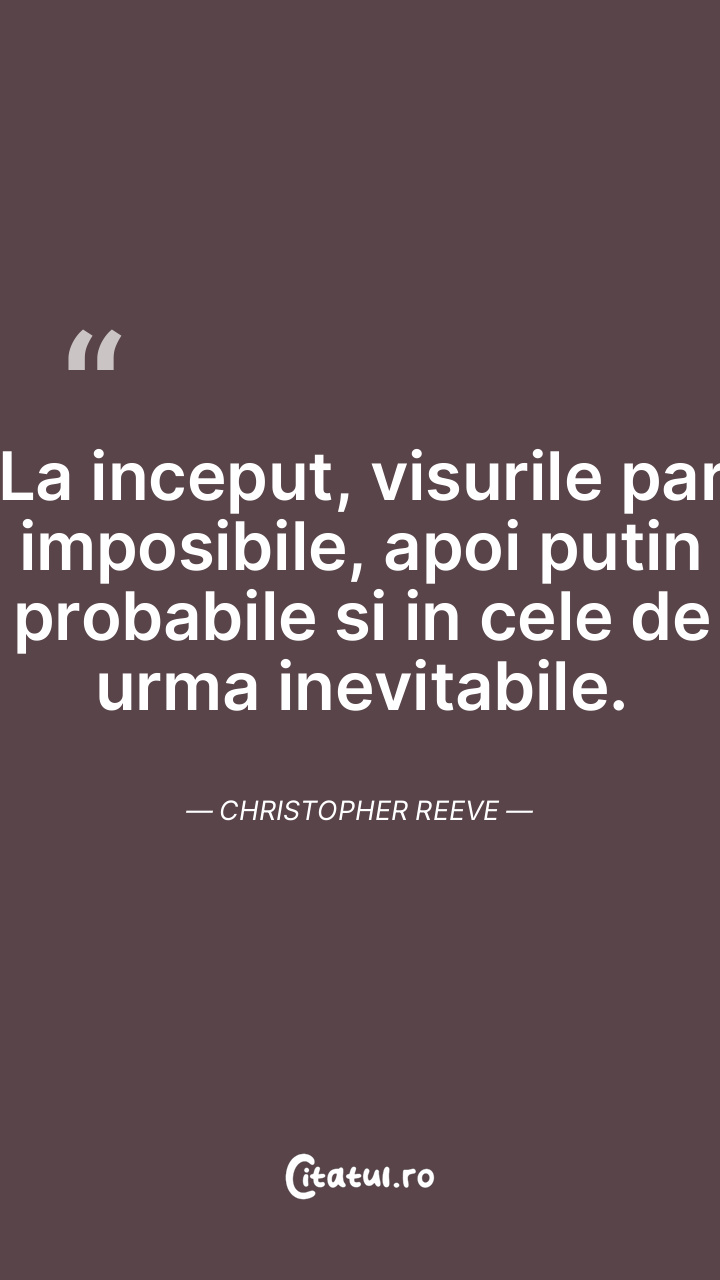 La inceput, visurile par imposibile, apoi putin probabile si in cele de urma inevitabile. Christopher Reeve