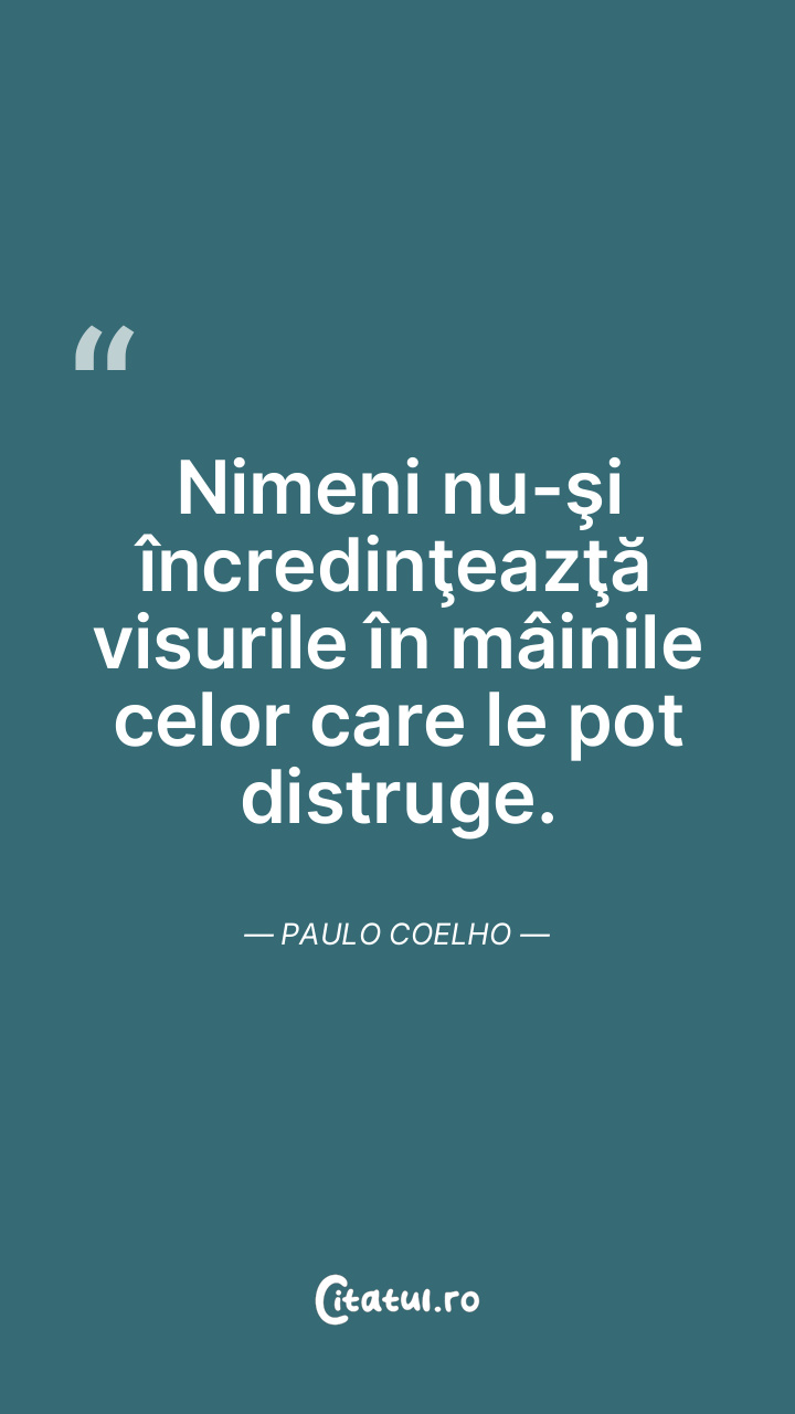 Nimeni nu-şi încredinţeazţă visurile în mâinile celor care le pot distruge. Paulo Coelho