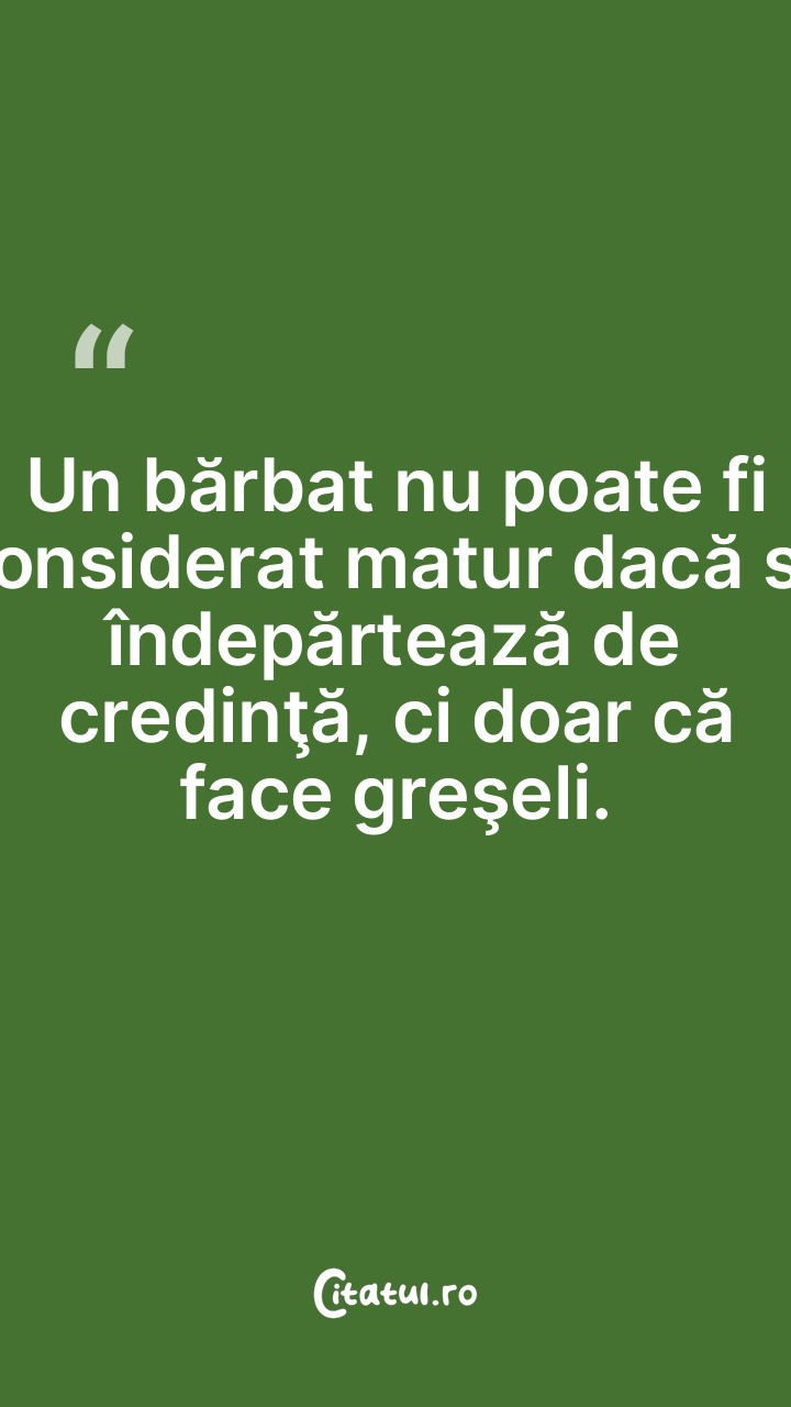 Un bărbat nu poate fi considerat matur dacă se îndepărtează de credinţă, ci doar că face greşeli.