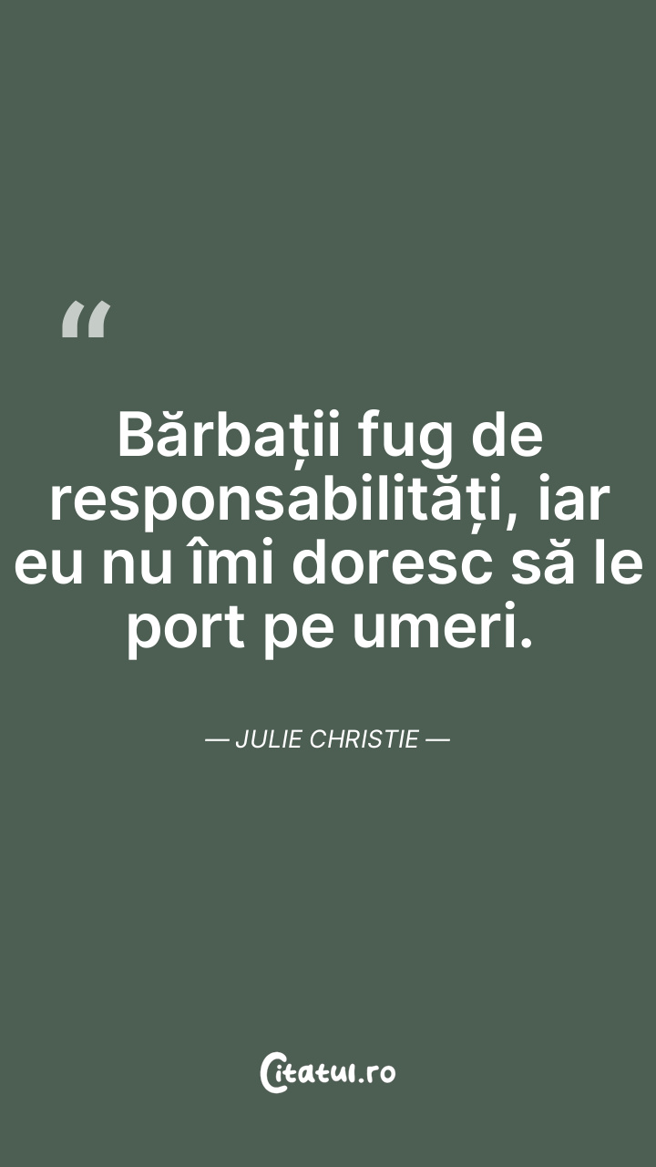 Bărbații fug de responsabilități, iar eu nu îmi doresc să le port pe umeri. Julie Christie