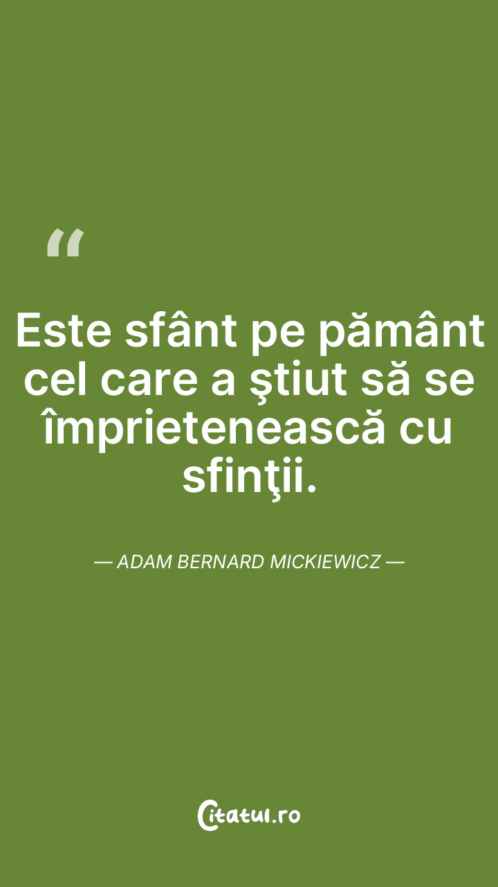 Este sfânt pe pământ cel care a ştiut să se împrietenească cu sfinţii. Adam Bernard Mickiewicz
