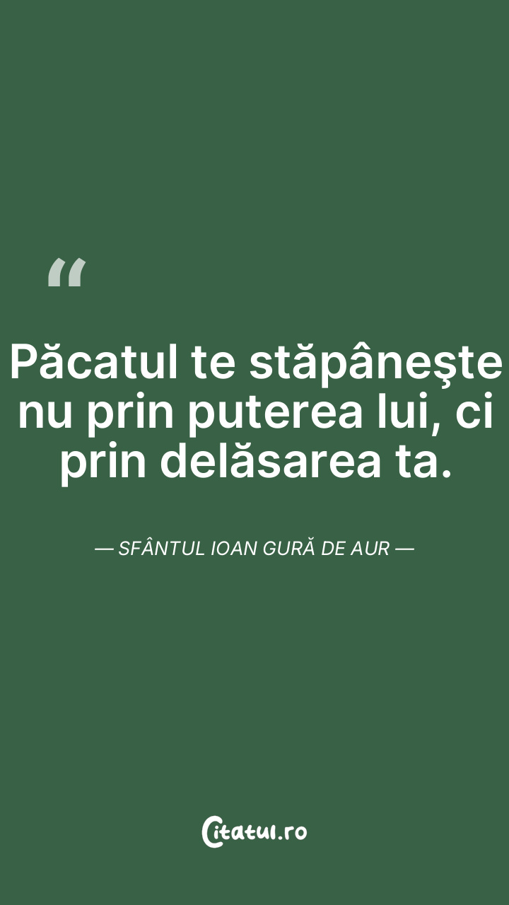 Păcatul te stăpâneşte nu prin puterea lui, ci prin delăsarea ta. Sfântul Ioan Gură de Aur