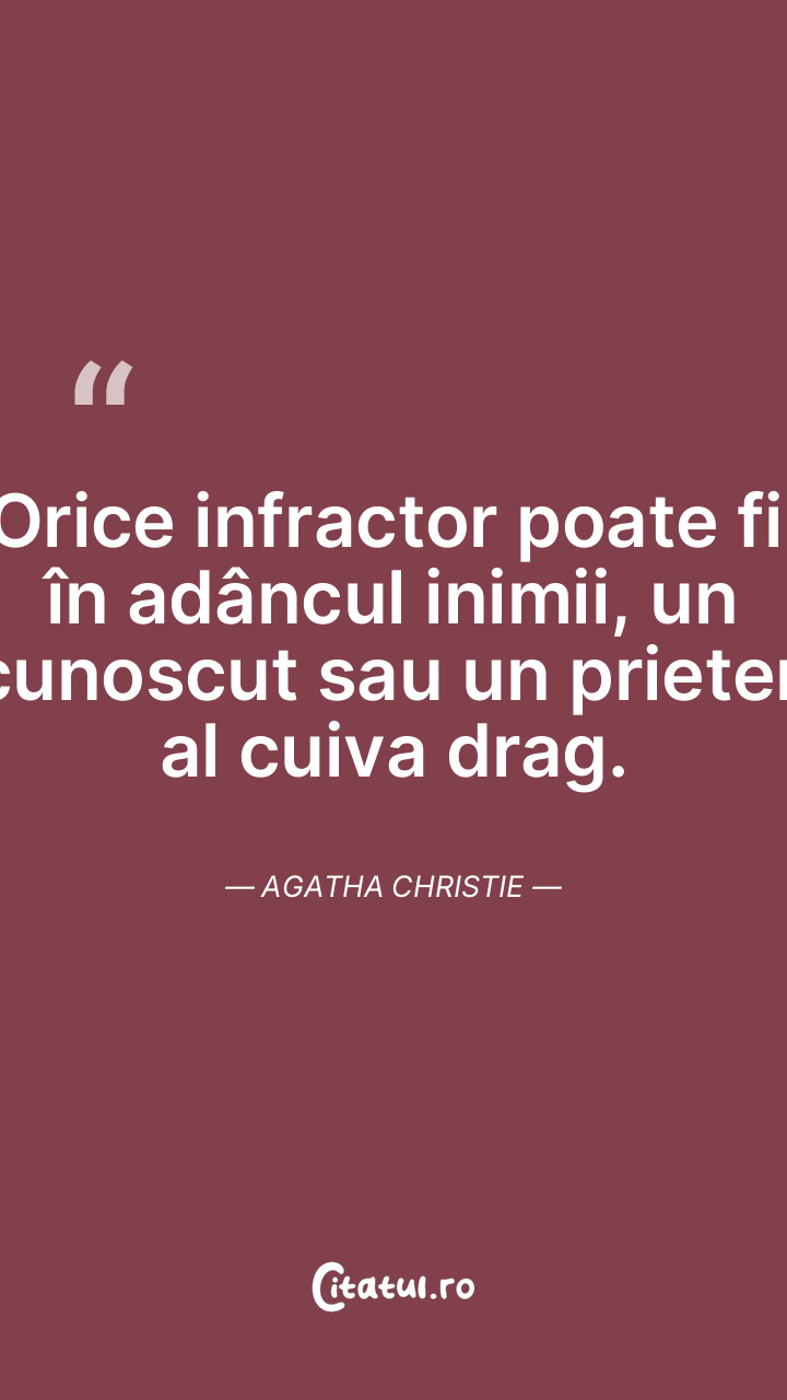 Orice infractor poate fi, în adâncul inimii, un cunoscut sau un prieten al cuiva drag. Agatha Christie