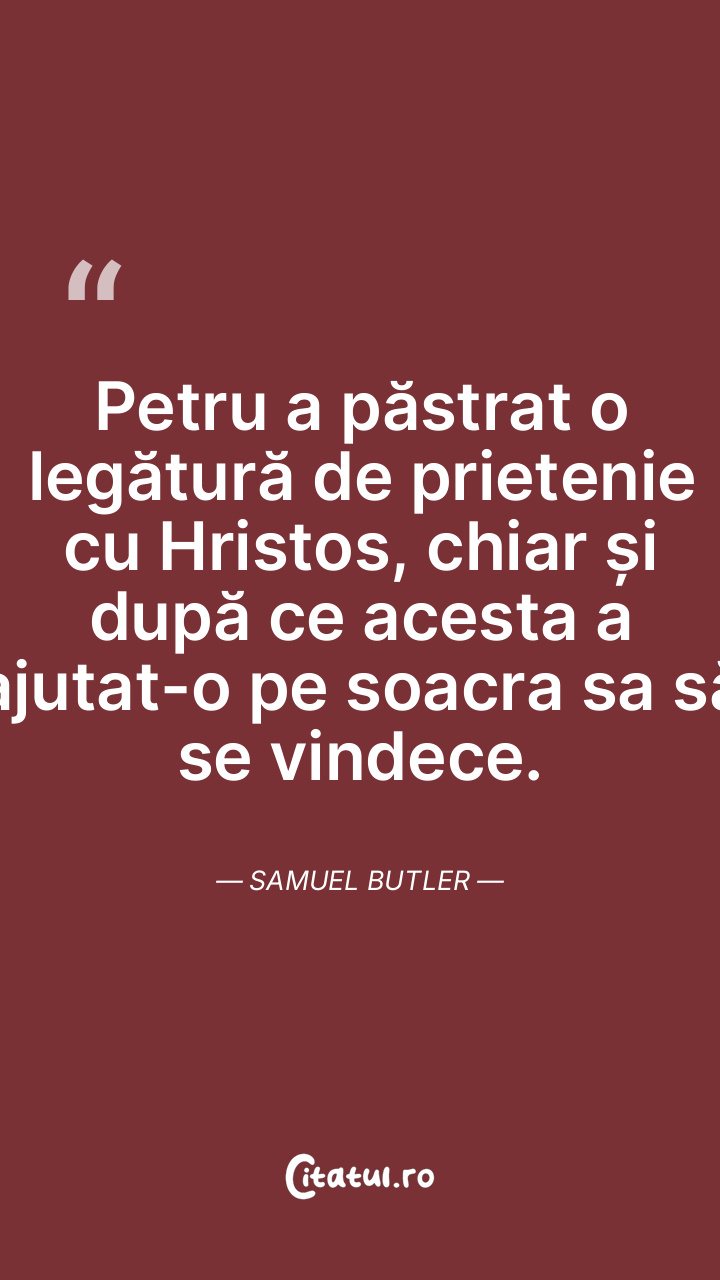 Petru a păstrat o legătură de prietenie cu Hristos, chiar și după ce acesta a ajutat-o pe soacra sa să se vindece. Samuel Butler