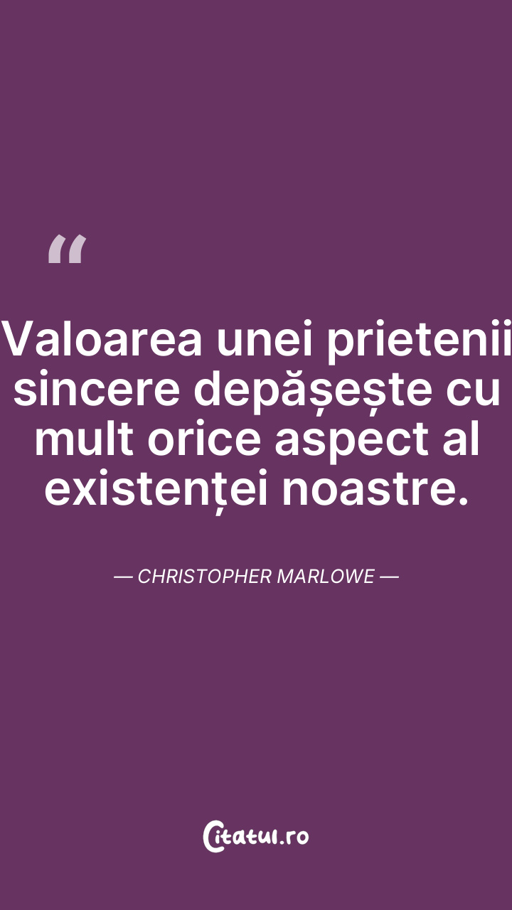 Valoarea unei prietenii sincere depășește cu mult orice aspect al existenței noastre. Christopher Marlowe