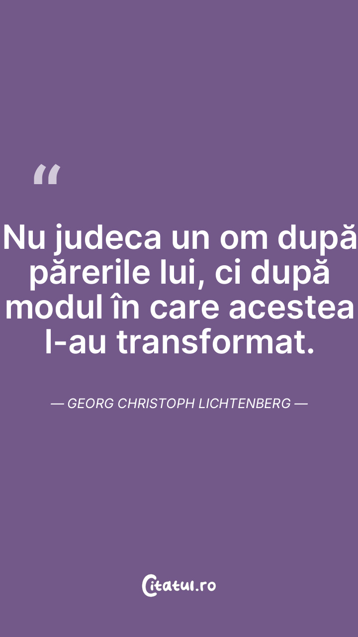 Nu judeca un om după părerile lui, ci după modul în care acestea l-au transformat. Georg Christoph Lichtenberg