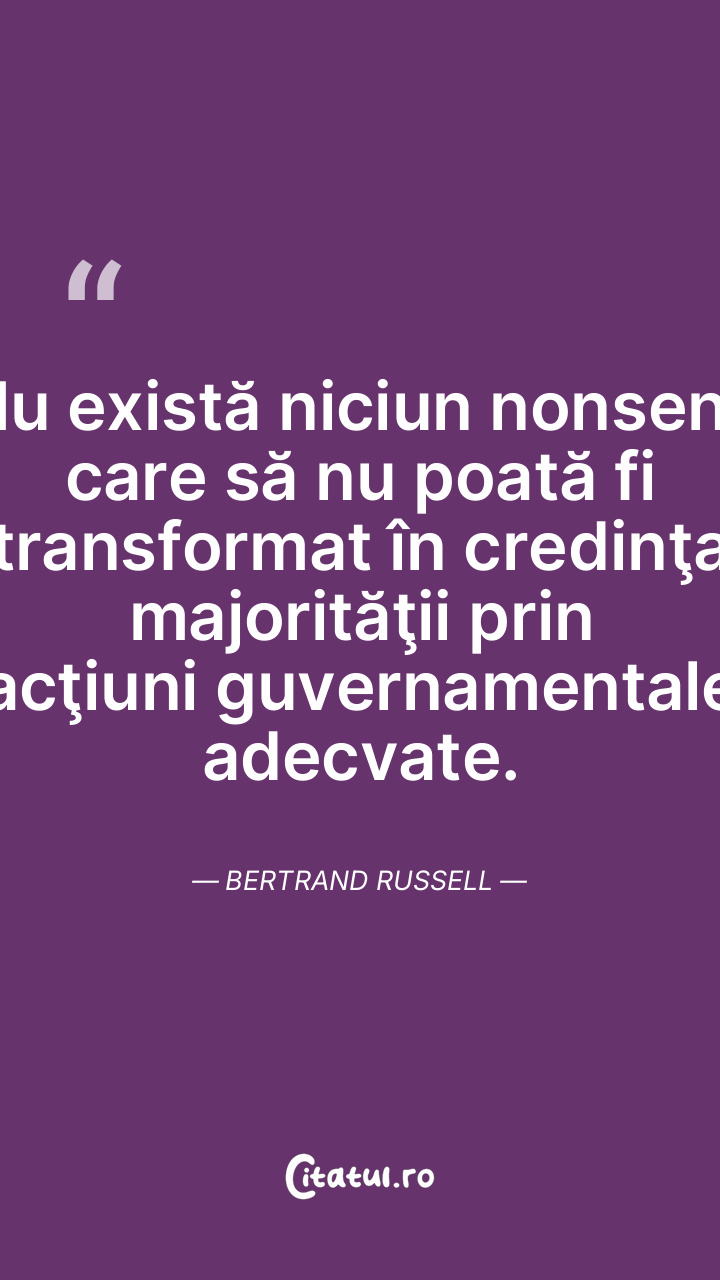 Nu există niciun nonsens care să nu poată fi transformat în credinţa majorităţii prin acţiuni guvernamentale adecvate. Bertrand Russell