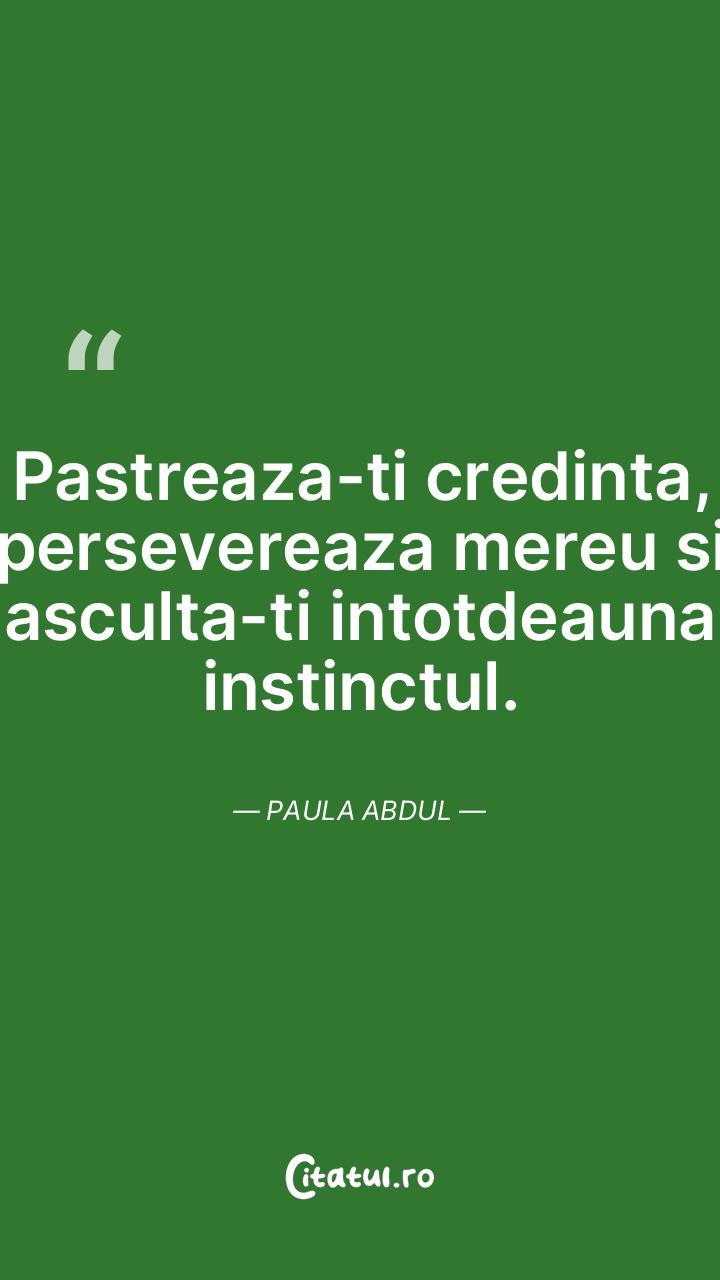 Pastreaza-ti credinta, persevereaza mereu si asculta-ti intotdeauna instinctul. Paula Abdul
