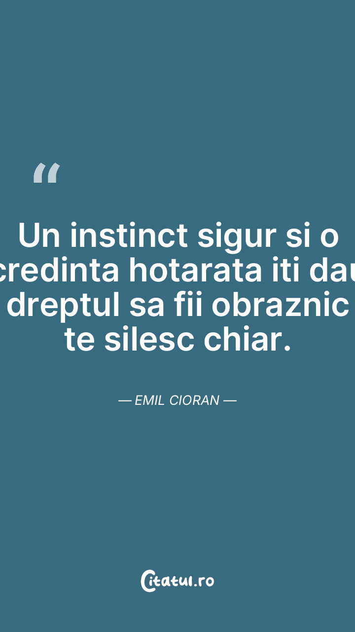 Un instinct sigur si o credinta hotarata iti dau dreptul sa fii obraznic te silesc chiar. Emil Cioran
