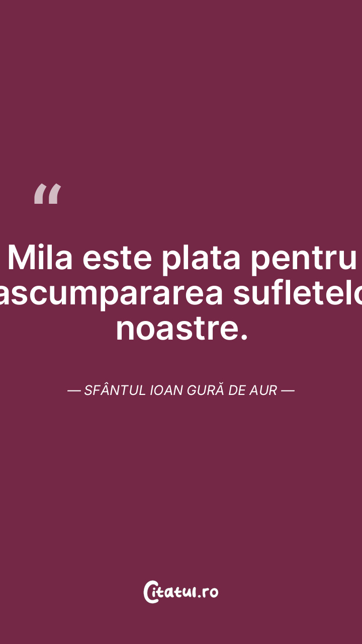 Mila este plata pentru rascumpararea sufletelor noastre. Sfântul Ioan Gură de Aur