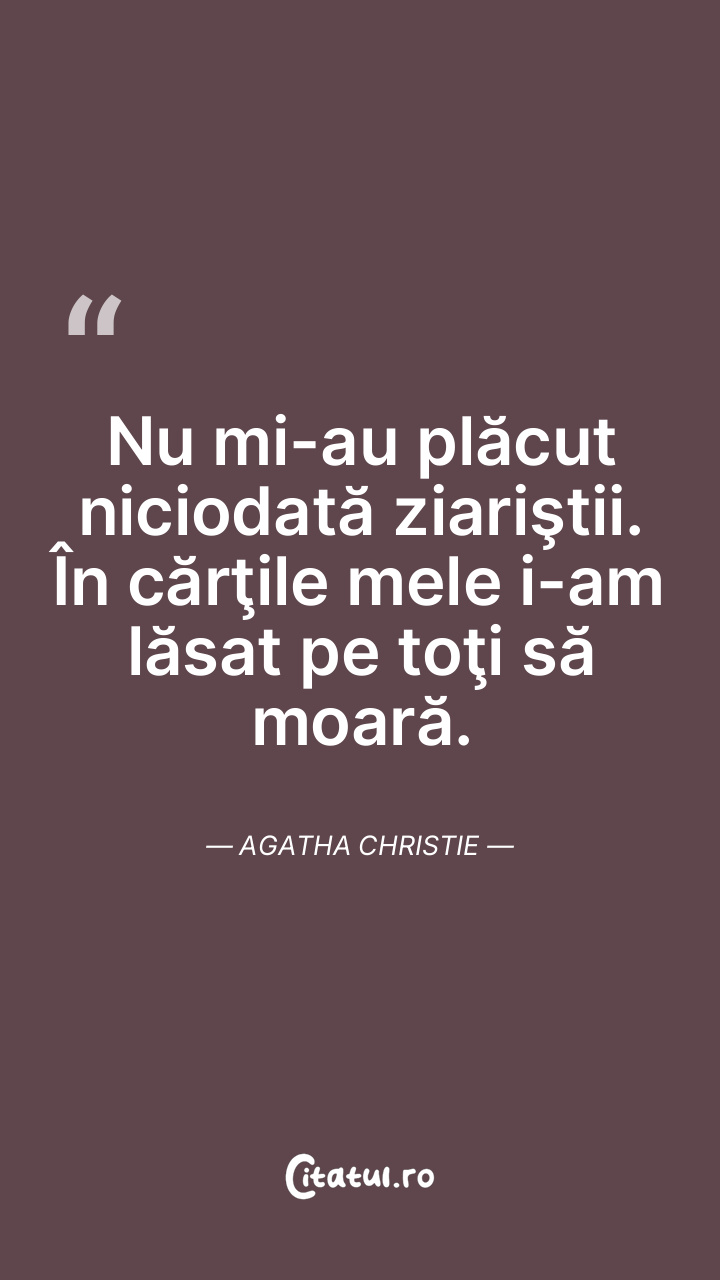 Nu mi-au plăcut niciodată ziariştii. În cărţile mele i-am lăsat pe toţi să moară. Agatha Christie