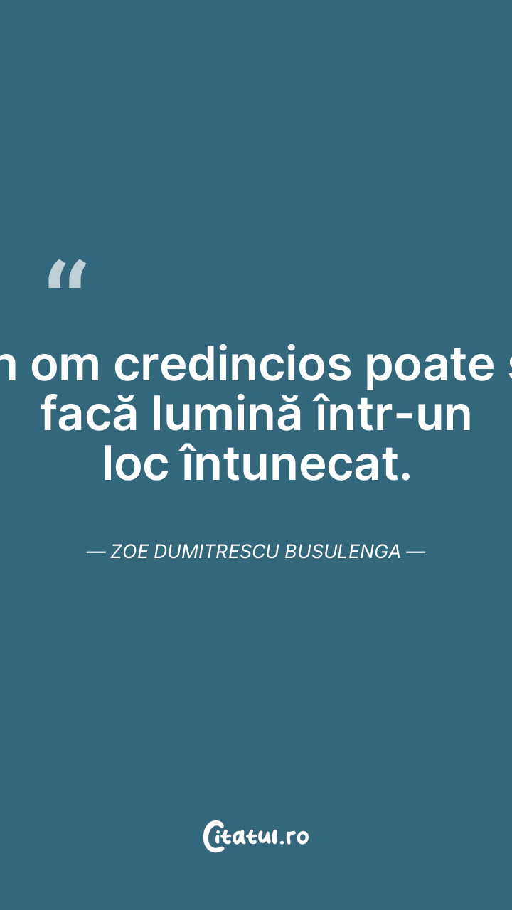 Un om credincios poate sa facă lumină într-un loc întunecat. Zoe Dumitrescu Busulenga