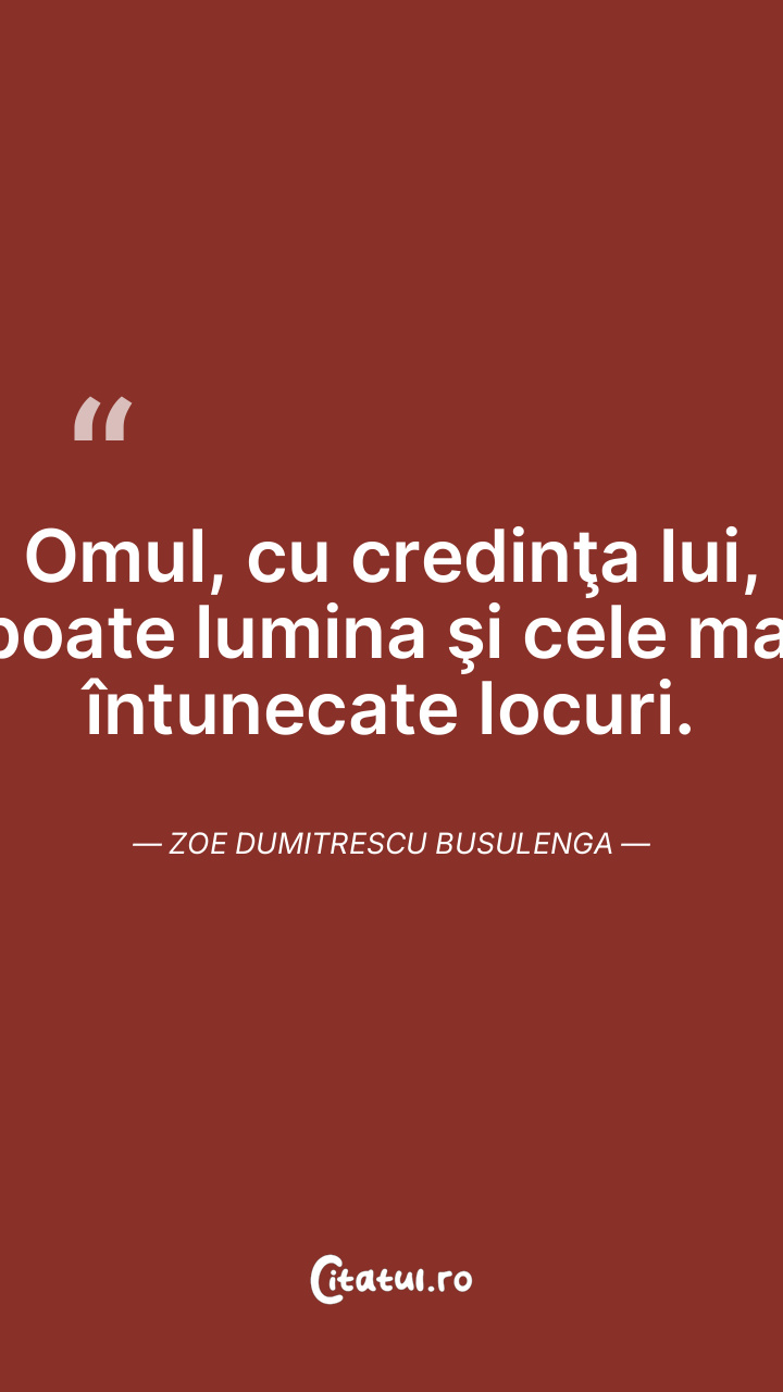 Omul, cu credinţa lui, poate lumina şi cele mai întunecate locuri. Zoe Dumitrescu Busulenga