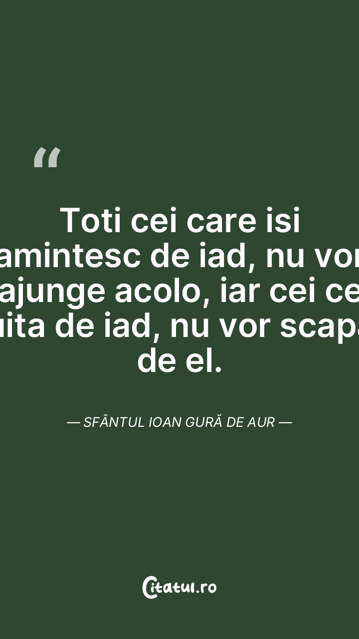 Toti cei care isi amintesc de iad, nu vor ajunge acolo, iar cei ce uita de iad, nu vor scapa de el. Sfântul Ioan Gură de Aur