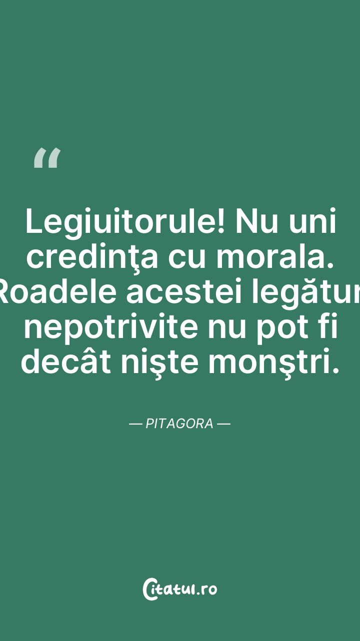 Legiuitorule! Nu uni credinţa cu morala. Roadele acestei legături nepotrivite nu pot fi decât nişte monştri. Pitagora