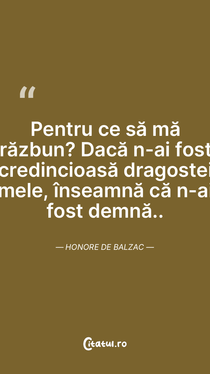Pentru ce să mă răzbun? Dacă n-ai fost credincioasă dragostei mele, înseamnă că n-ai fost demnă.. Honore de Balzac