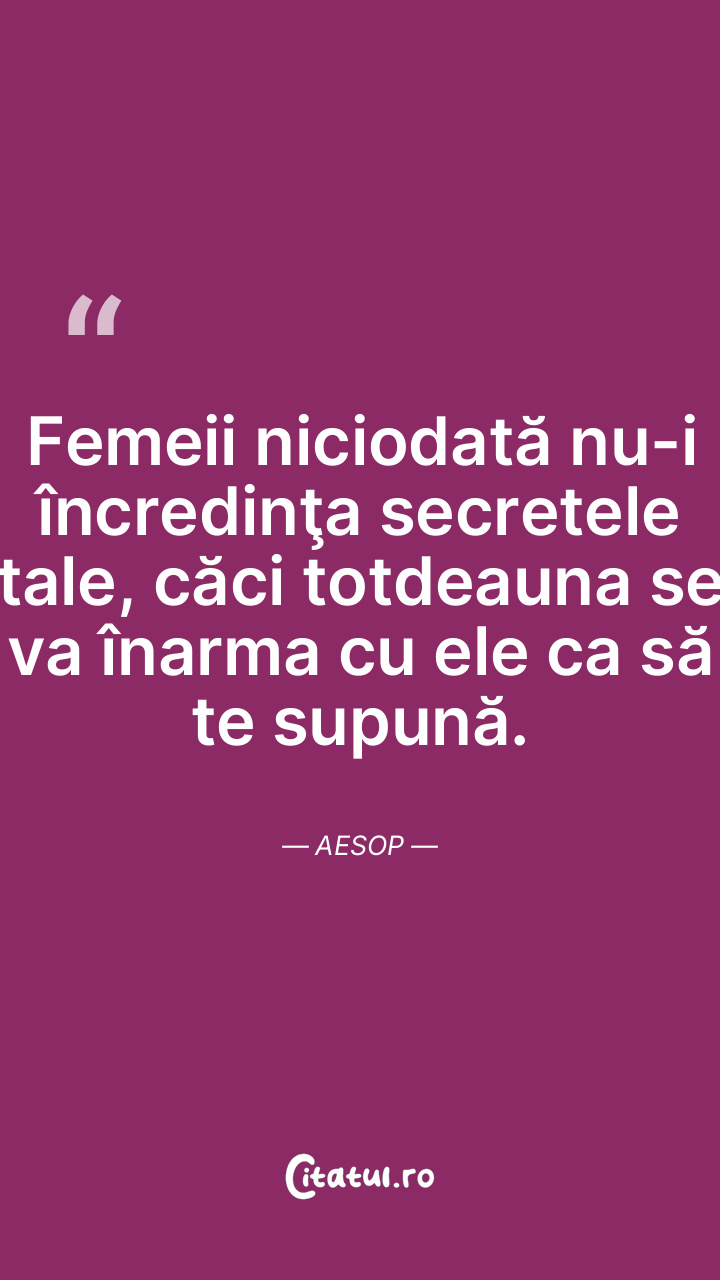 Femeii niciodată nu-i încredinţa secretele tale, căci totdeauna se va înarma cu ele ca să te supună. Aesop