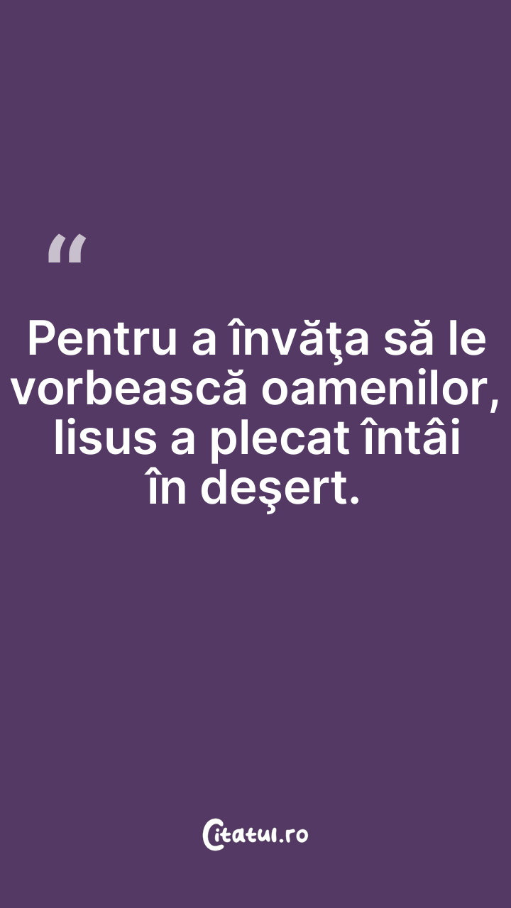 Pentru a învăţa să le vorbească oamenilor, Iisus a plecat întâi în deşert.