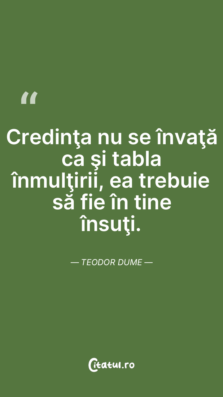 Credinţa nu se învaţă ca şi tabla înmulţirii, ea trebuie să fie în tine însuţi. Teodor Dume