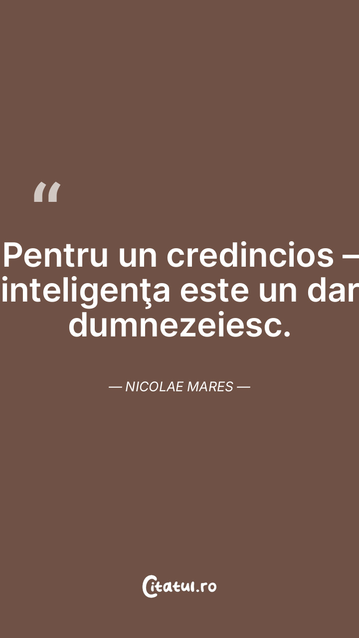 Pentru un credincios – inteligenţa este un dar dumnezeiesc. Nicolae Mares