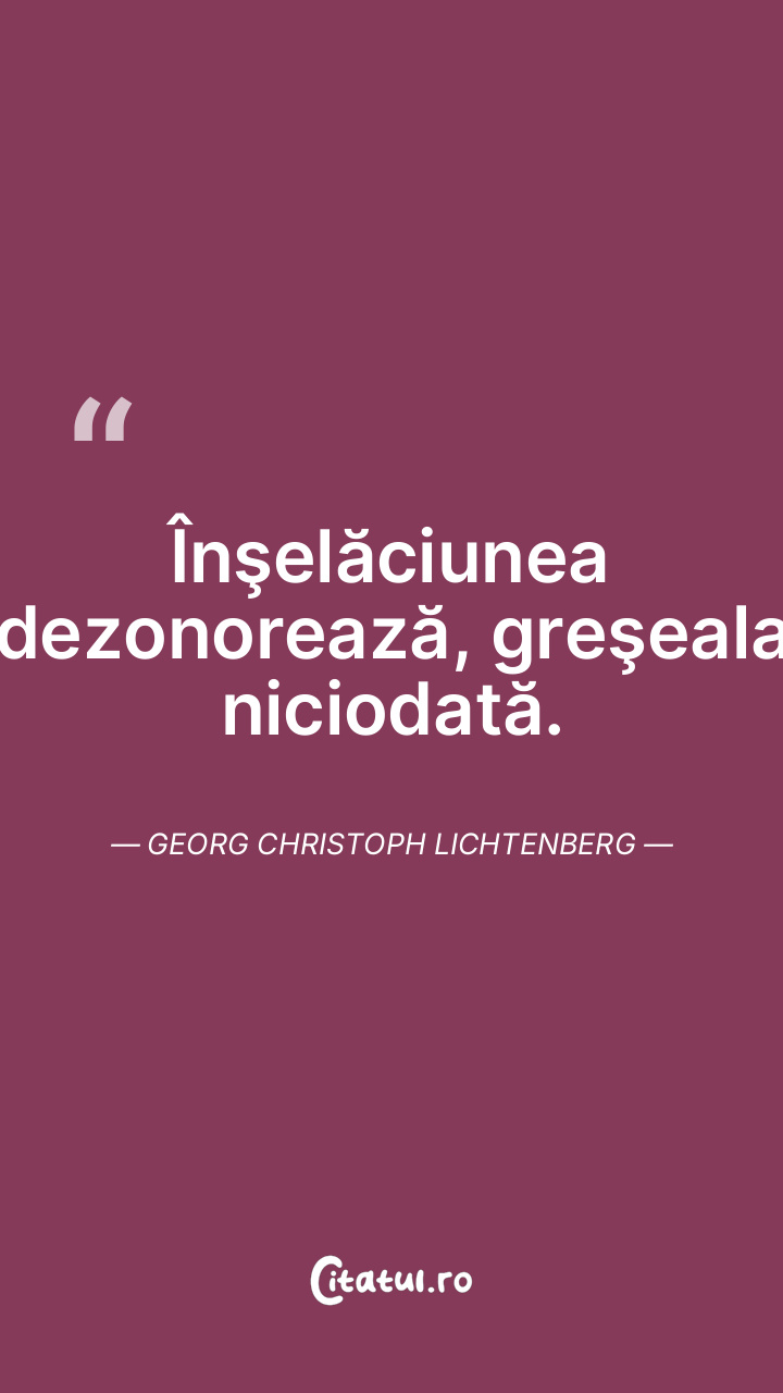 Înşelăciunea dezonorează, greşeala niciodată. Georg Christoph Lichtenberg