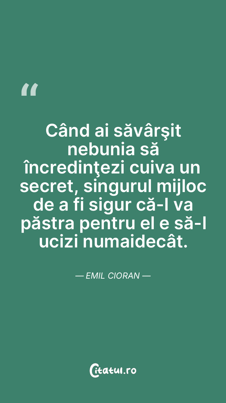 Când ai săvârşit nebunia să încredinţezi cuiva un secret, singurul mijloc de a fi sigur că-l va păstra pentru el e să-l ucizi numaidecât. Emil Cioran