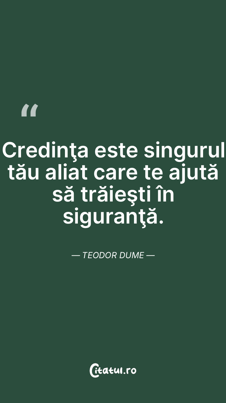 Credinţa este singurul tău aliat care te ajută să trăieşti în siguranţă. Teodor Dume