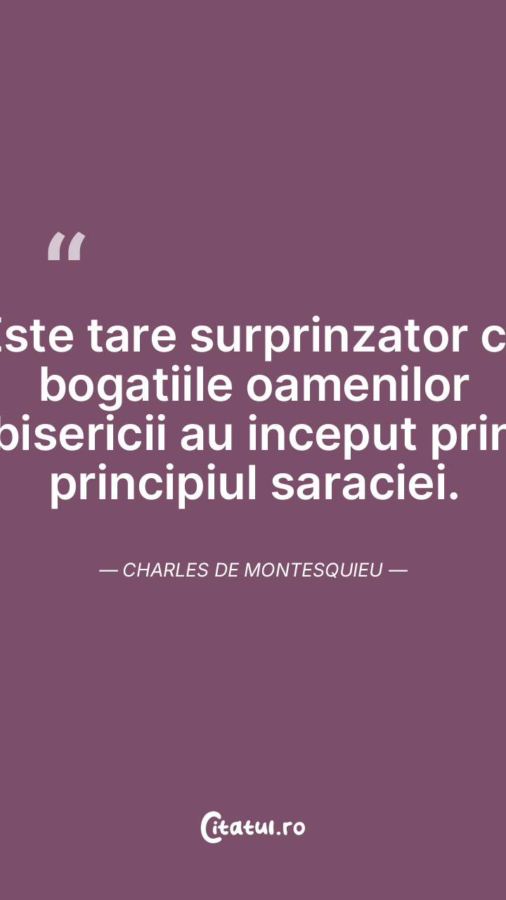 Este tare surprinzator ca bogatiile oamenilor bisericii au inceput prin principiul saraciei. Charles de Montesquieu